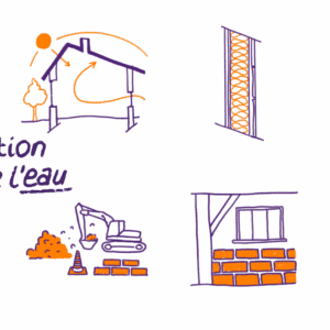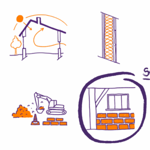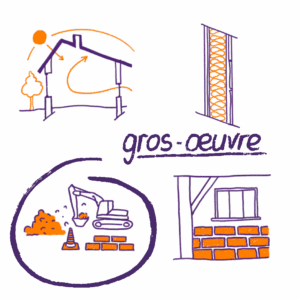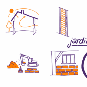 Briqueterie éphémère : fabrication de 3500 adobes avec les habitants de Pommeret et les enfants des centres de loisirs Lamballe – Terre & Mer. Maçonnerie des adobes : environ 100 m² de briques de terre crue dans une halle bioclimatique. Mur isolé en paille et enduit en terre. Travaux réalisés en 2025.