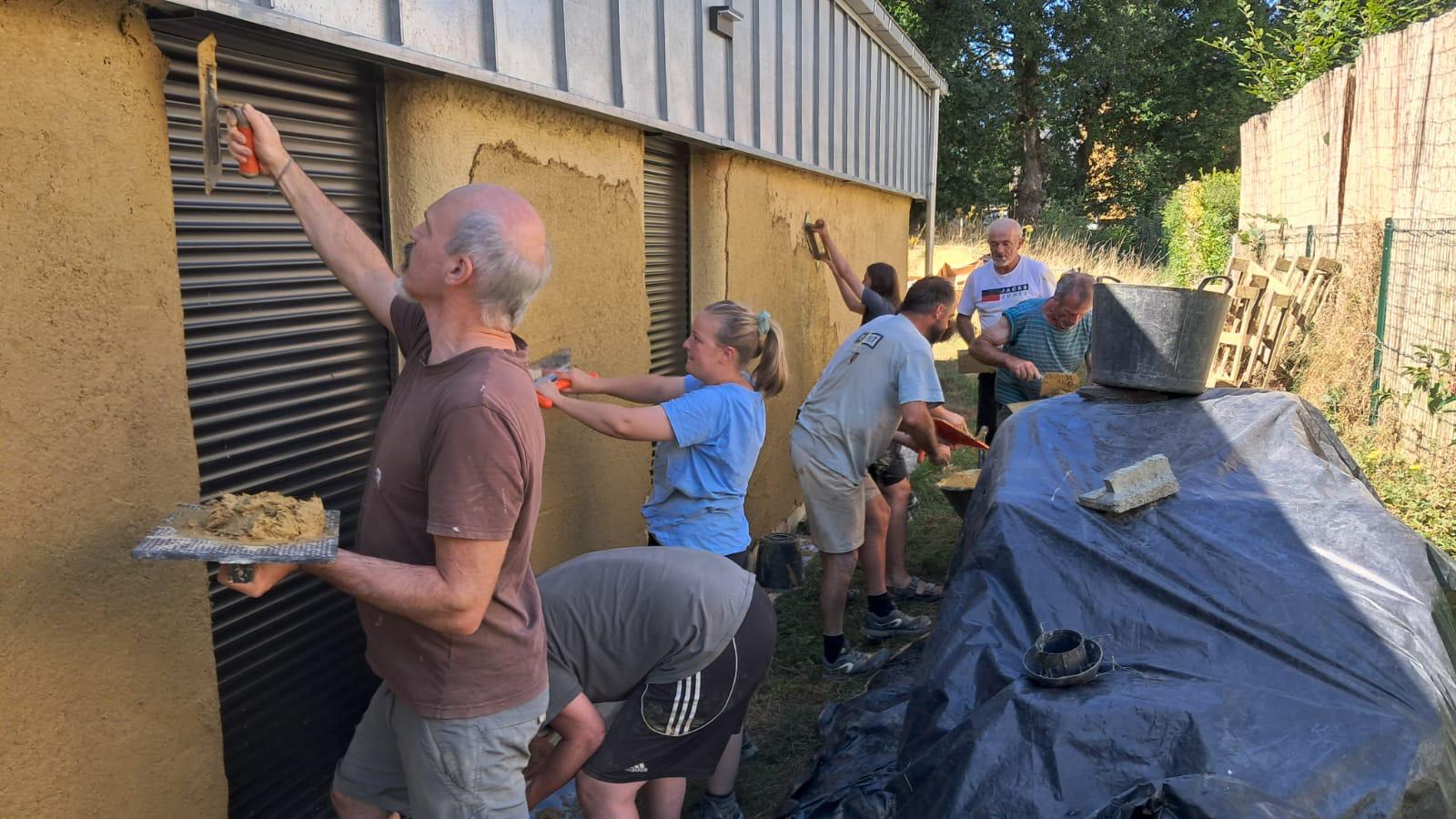 Cet été, l’association a organisé 3 semaines de chantier participatif à la Chapelle-Thouarault (35). L’objectif : réaliser les enduits de finition de la future médiathèque. Le projet comporte la rénovation d’une bâtisse en bauge, ainsi qu’une extension neuve, dont l’isolation en paille avait été réalisée plus tôt dans l’année par Empreinte. L’étape des enduits de finition est particulièrement méticuleuse et technique, mais cela n’a pas empêché les personnes venues se former et partager une vie collective, de réaliser de très belles surfaces intérieures et extérieures.
