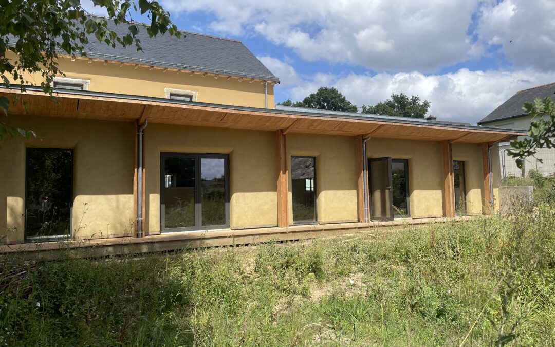 Le chantier participatif à la Chapelle-Thouarault a été l’occasion de mobiliser du monde pour réaliser les enduits de finition extérieurs de la maison de Frédéric et Sophie, située à quelques rues dans la même commune. Le projet d’habitat du couple, a été accompagné par Empreinte depuis plusieurs années, via le cycle de formation notamment. La maison comprend notamment des BTC (briques de terre compressées) et des enduits terre intérieurs et extérieurs.
